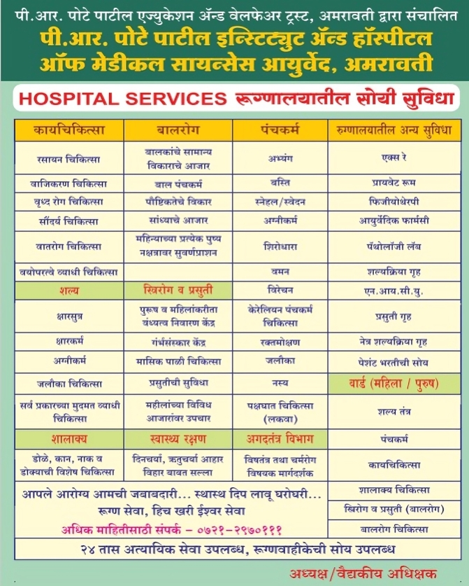 P. R. Pote Patil College of Medical Sciences Ayurved run under the umbrella of P. R. Pote Patil Group of Educational Institutes, Amravati.