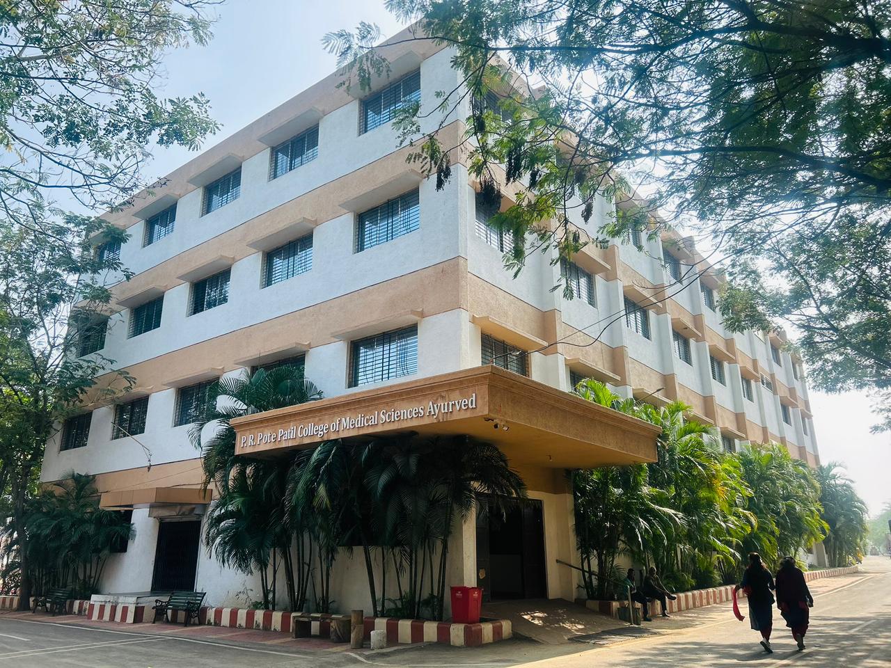 P. R. Pote Patil College of Medical Sciences Ayurved run under the umbrella of P. R. Pote Patil Group of Educational Institutes, Amravati having huge campus of professional course engineering, MBA, Pharmacy, Agriculture along with Ayurved Stream. P. R. Pote Patil Group of Educational Institutes, Amravati covers almost 30 acres area in Heart of Amravati city and attached 2000 housing Society of Pote estate. Campus having well planned infrastructure, having 60 bedded hospital with well equipment, ICU, Operation Theaters, X-Ray, Pathology Unit & Panchakarma Unit.